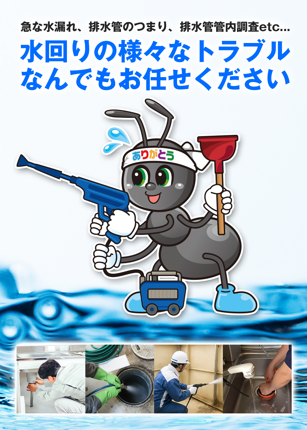 住宅やマンション、施設など、数多くの施工実績を通じて培ったノウハウと確かな技術力を活かし、排水管の高圧洗浄から内視鏡調査、様々な水回り箇所での工事・施工など、一貫して対応しております。