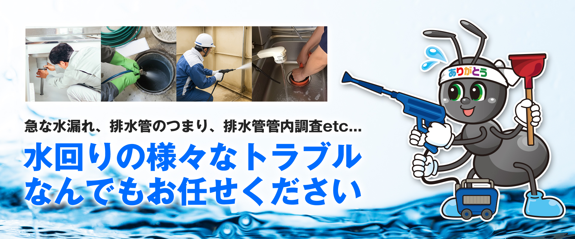 排水管の破損・老朽化・勾配不良・つまり・悪臭など、汚水に関するあらゆるトラブルに対応します。